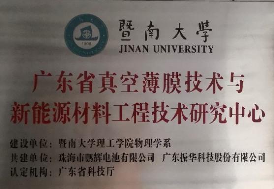 2016年,物理学系申报的广州市真空薄膜技术与新能源材料重点实验室获得立项,获批经费200万元;2018年,物理学系联合真空学会部分企业会员单位成立了广东省真空薄膜技术与新能源材料工程技术研究中心。