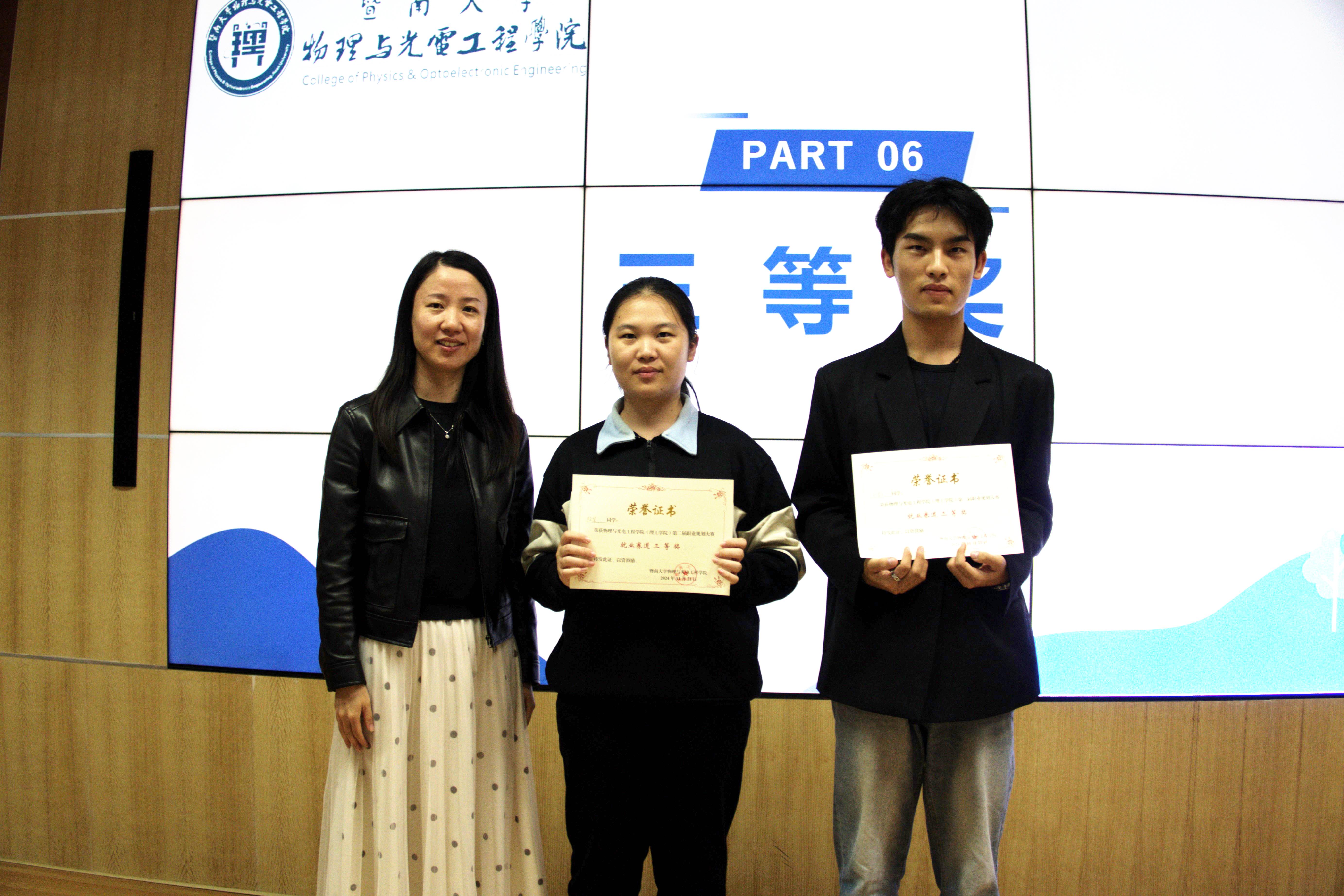 曹玲莎为就业赛道三等奖颁奖