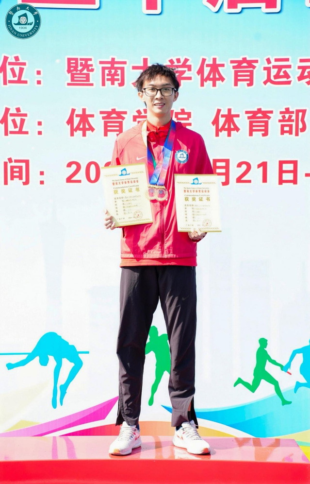 任建彬参加暨南大学第五十届田径运动会获奖图片