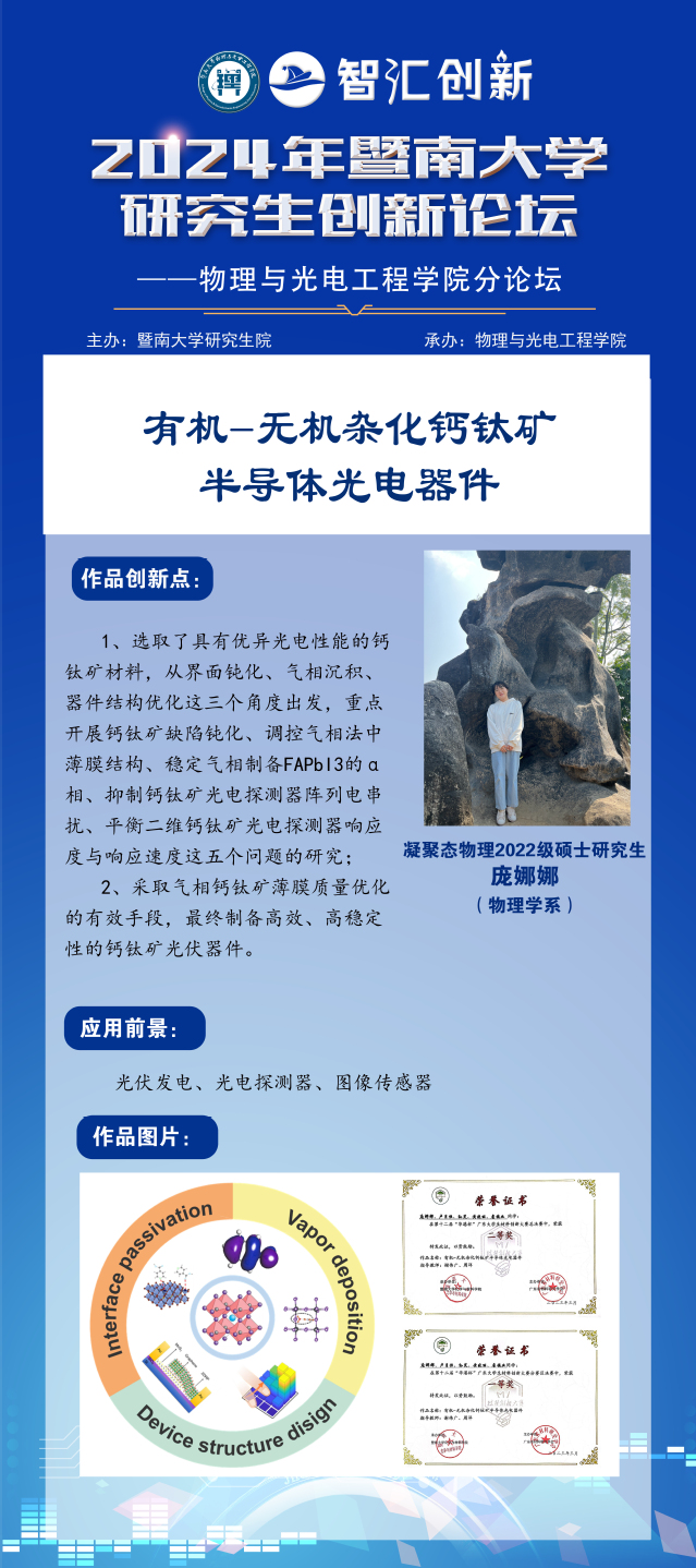 1月3日下午,学校在曾宪梓科学馆国际会议厅举办的“智汇创新·2024年暨南大学研究生创新论坛”圆满落幕。007即时比分 博士生陈敬旭荣获论坛的最高奖——优秀创新成果奖,硕士生庞娜娜荣获校级创新成果奖,007即时比分 荣获“优秀组织单位”称号。
