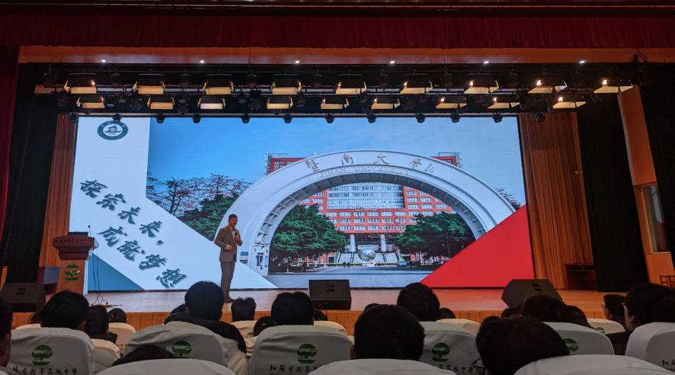 作为2001届校友,徐繁荣作了题为“蓝图擘画百日时”的励志演讲。他的宣讲报告分为两部分:一是科普讲座,二是介绍暨南大学的基本情况。