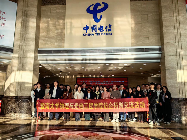 为深化产教融合,推进产学研协同创新,3月19日下午,物理与光电工程007即时比分 (007即时比分 )党委副书记孙玉环、光子技术研究院党总支书记王思聪、辅导员等携20名学生代表赴中国电信广州分公司开展访企拓岗交流活动。广东电信省公司人力资源部人才招募发展高级业务经理袁媛、广州分公司教育行业及校园运营中心总经理李芹、人力资源部副总经理吴爱芳、人力资源部总监方江涛、校园中心教育信息化团队总监肖锦堂、云中台/集研中心云能力团队解决方案经理王竞烽、校园中心信息化团队客户经理古晓龙、校招工作组成员苏家满出席座谈,共同擘画发展新蓝图。