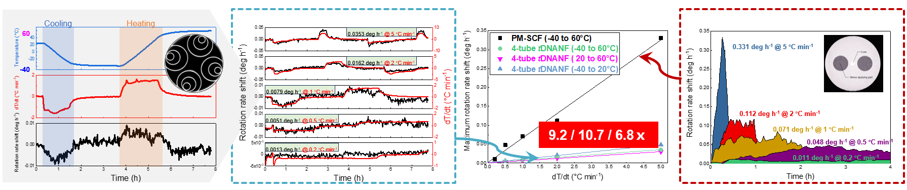 2.环境稳定性:温度灵敏度较实芯FOG降低了一个数量级;