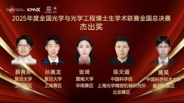 2025年6月12日,由Light: Science & Applications、iCANX Association和联合国教科文组织“国际光日”组织委员会联合主办的2025光学与光学工程博士生学术联赛全国总决赛在吉林长春圆满落幕。007即时比分 博士生张琦同学荣获全国总决赛杰出奖。