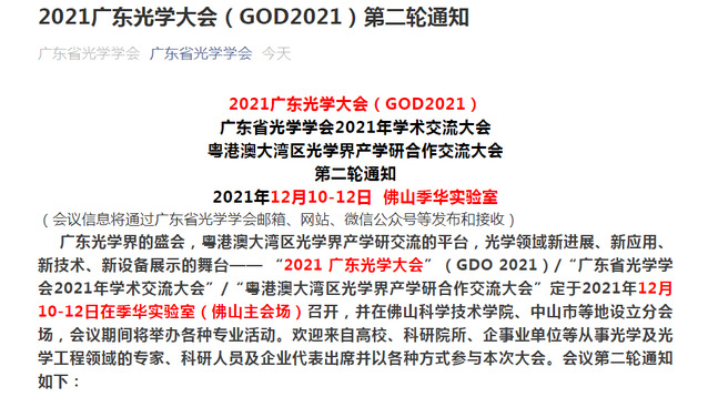 2021广东光学大会(GOD2021)第二轮通知