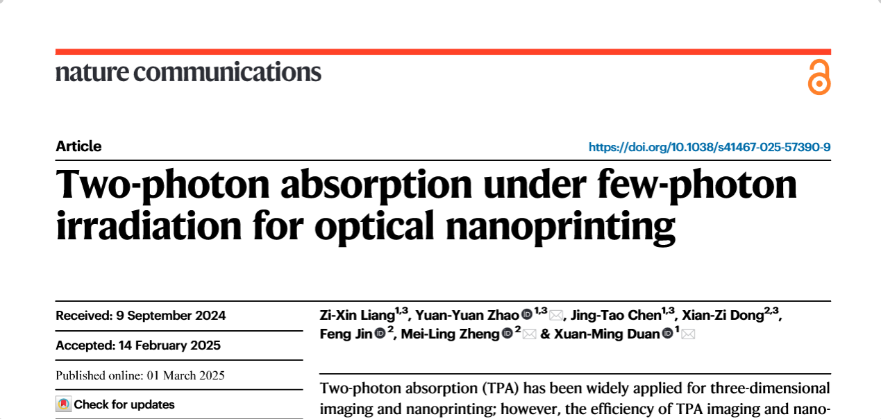 赵圆圆/段宣明教授团队在Nature Communications发表论文 首次阐明双光子吸收量子机制