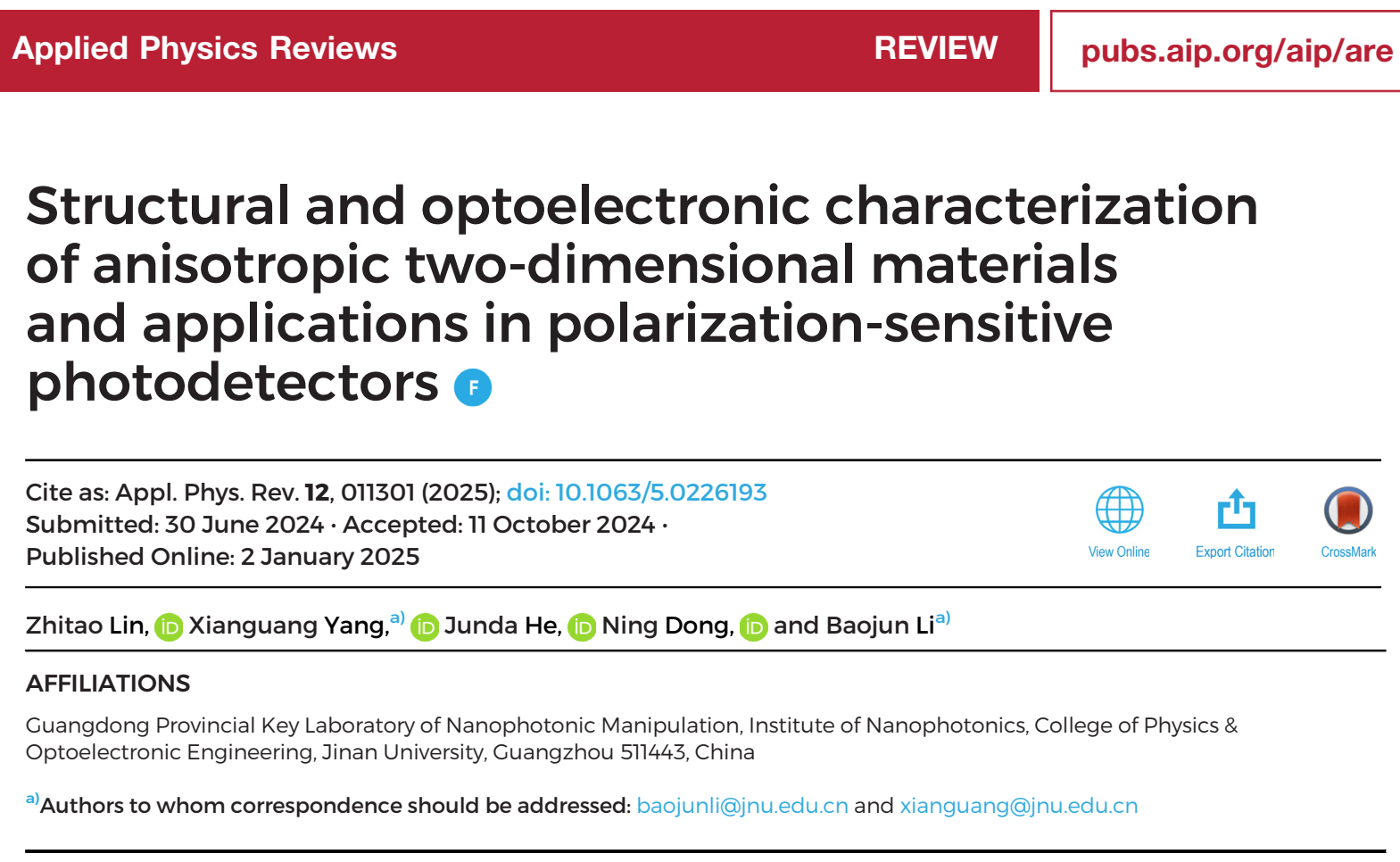 李宝军教授团队在Applied Physics Reviews发表论文