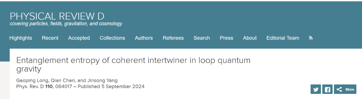 物理学系龙高平副教授在圈量子引力中的纠缠相关研究上取得进展