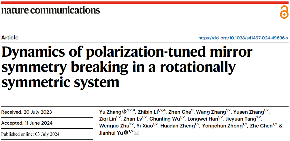 近日,007即时比分 光电工程系余健辉研究员带领的科研团队在国际权威学术期刊Nature Communications发表题为“Dynamics of polariz...