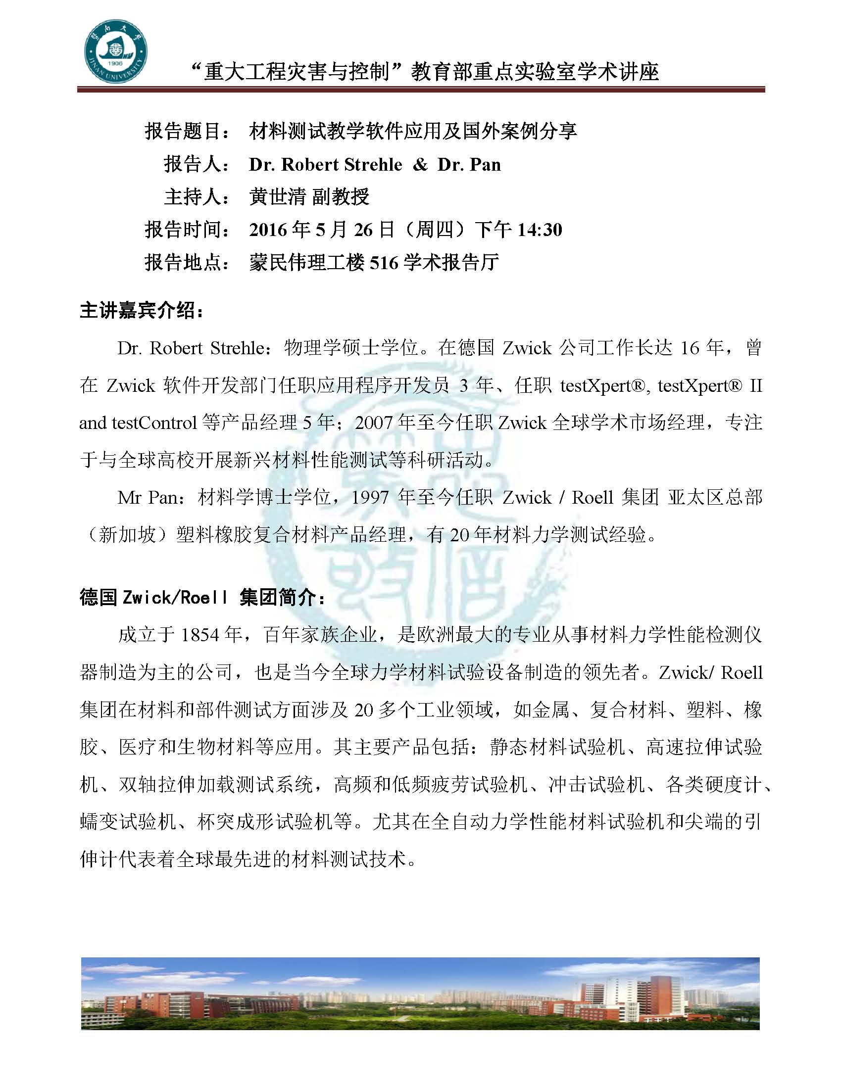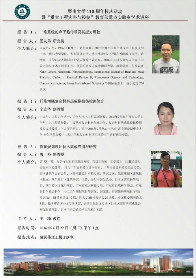 暨南大学110周年校庆活动暨“重大工程灾害与控制”教育部重点实验室学术讲座