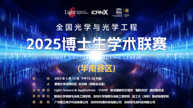 4月12日,2025年全国光学与光学工程博士生学术联赛(华南赛区)在暨南大学校友楼举行。本次学术联赛由Light: Science & Applications、iCANX ...